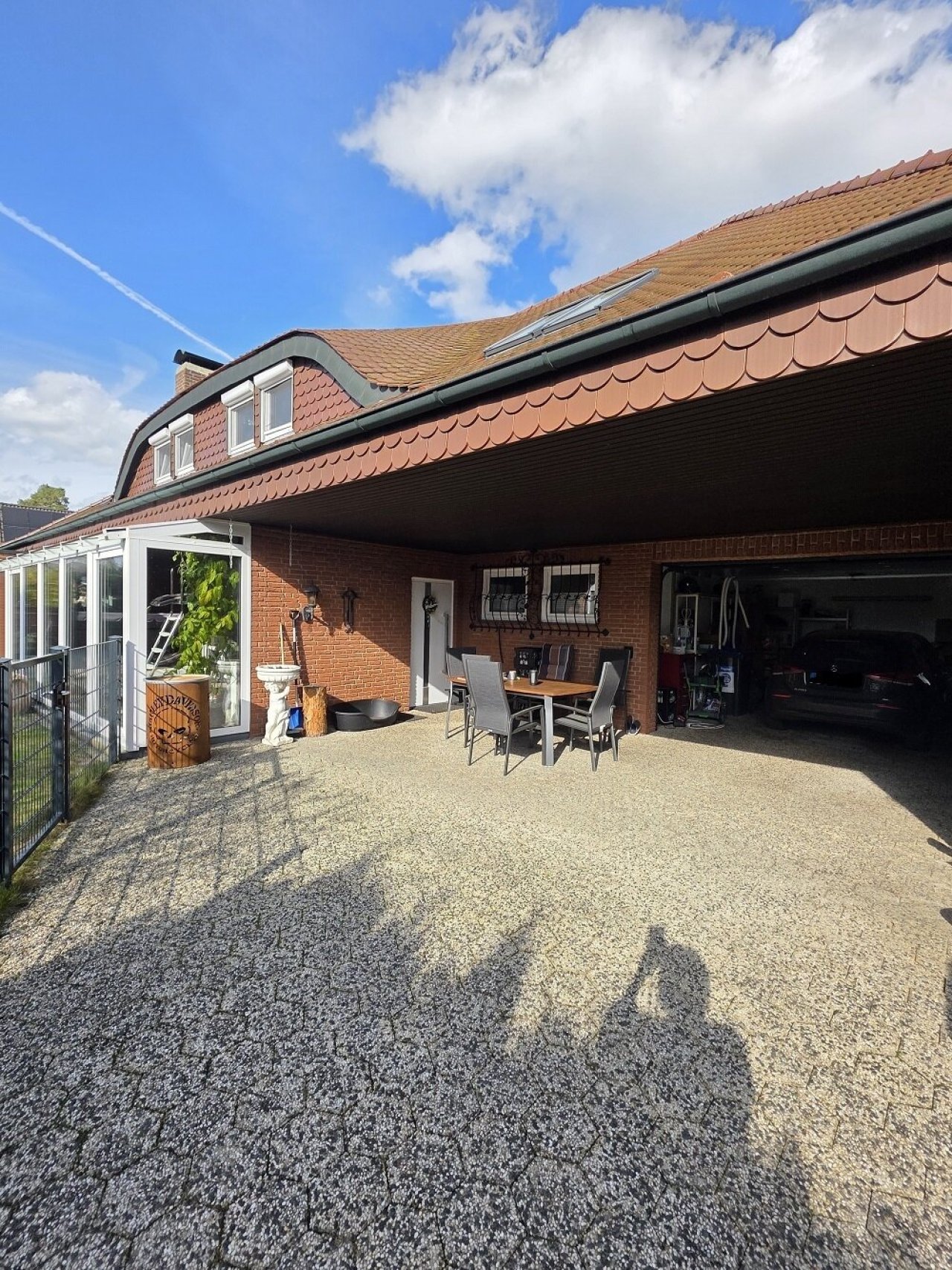 Das äußere Erscheinungsbild überzeugt durch eine hochwertige Verblendsteinfassade sowie ein stilvolles Dach mit Biberschwanzziegeln, ergänzt durch charakteristische Fledermausgauben auf der Nord- und Südseite. Kupferrinnen und -fallrohre unterstreichen den wertigen Gesamteindruck.